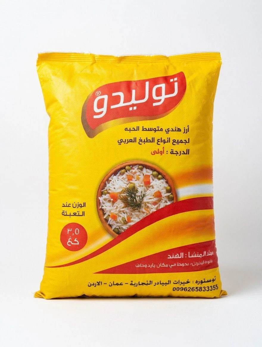 ارز توليدو متوسط الحبه 3.5 كغم 1*8 كيس